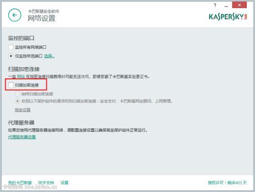 PS:1、2两项都需关闭,3项把卡巴的证书删除掉更彻底。至于是否需要扫描加密连接,看个人爱好。