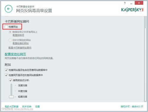 关闭方法:1:在网页反病毒-高级设置里关闭卡巴斯基网址安全顾问(这个网址顾问今天才发现并无卵用)。