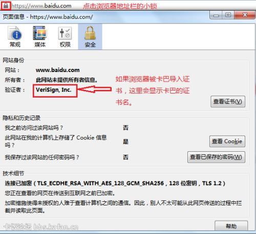 如果开启卡巴扫描加密连接,浏览器需要导入卡巴证书(一些浏览器会自动导入),不然访问加密连接时浏览器会提示此链接不受信任(或此链接不安全等)。