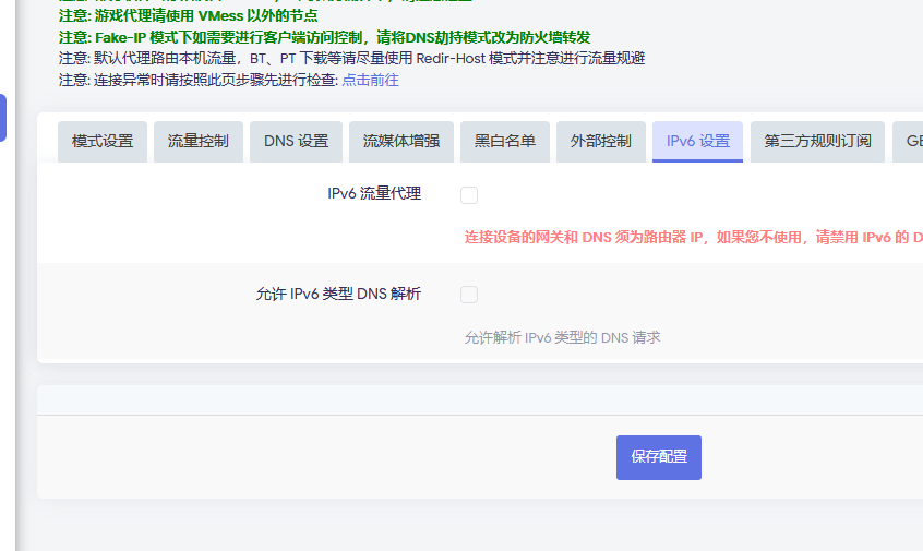 还有一点要注意,如果你使用fakeip模式,那么这个 "仅允许常用端口流量" 的选项是没有的,也不需要设置